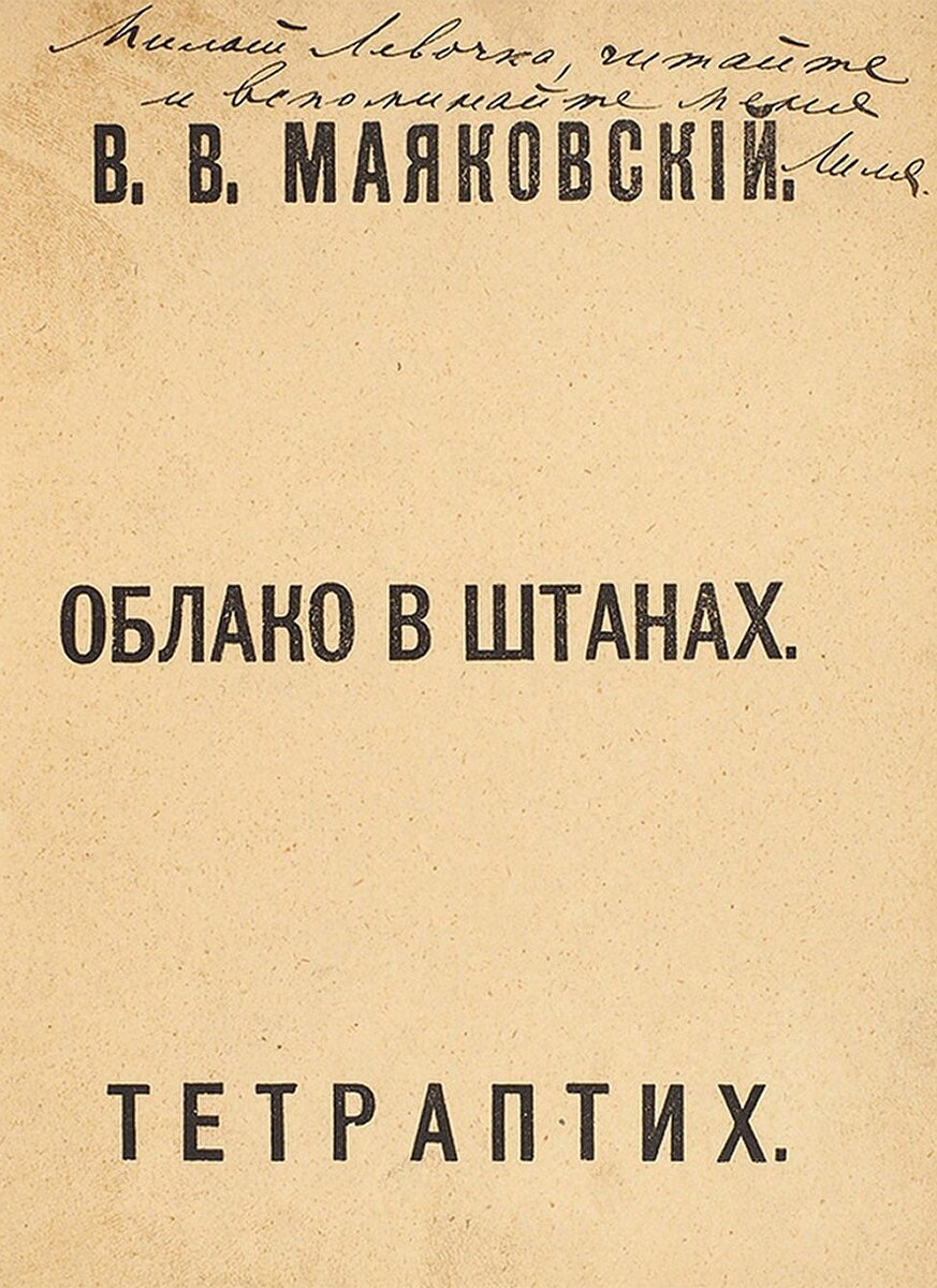 В 1915 году должна была выйти поэма "Тринадцатый апостол". Но редакторы вырвали некоторые строчки и потребовали поменять название. Так на свет под пером Владимира Маяковского вышло "Облако в штанах". А я больше, чем через сто лет решила прочитать это произведение. И прочитать его вслух. Вслух, к слову, Маяковского читать очень приятно - так проще чувствовать рифму и темп.