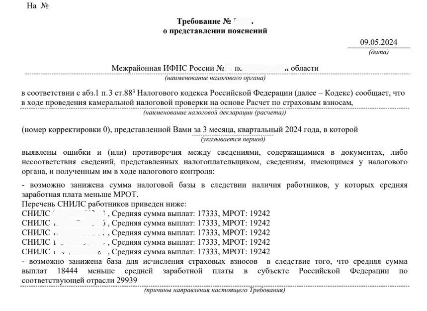 На днях у нас в работе было требование одного прекрасного клиента, который задал столько сопутствующих вопросов, что мы смогли составить из них мини-справочник вопросов и ответов по теме зарплаты ниже рыночного уровня😁 Итак, требование на фото, 10 вопросов клиента по нему и 10 наших ответов. 1️⃣Что налоговики хотят получить таким требованием? Инспекция хочет убедиться в том, что низкий уровень заработной платы у сотрудников предпринимателя связан с какими-то объективными причинами, а не с выплатой зарплаты "в конвертах". 2️⃣ А какие это могут быть причины? Какие инспекция лучше всего принимает? Работа на неполную ставку, отпуска без сохранения заработной платы, экономическая ситуация на том рынке, на котором ИП ведёт свою деятельность. 3️⃣Каковы шансы из вашей практики, что если ответить по «экономическим причинам», то инспекция это примет и все? Шансы тем выше, чем больше фактических объективных причин будет озвучено в ответе 4️⃣Если зарплата ниже среднеотраслевой, то такие т