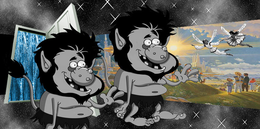 Взлетев на пару лестничных пролётов, он с изумлением и ужасом узрел такую картину: его попутчицу сгрёб в охапку гоблин, как отражение в зеркале похожий на мужа бедняжки, и нещадно молотил кулаком, заставляя ту испускать отчаянные вопли.