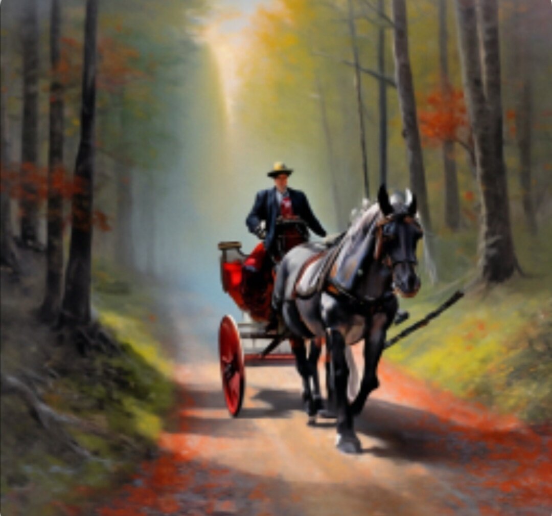 По дороге, не спеша ехала чёрно-красная двуколка, запряженная серой в яблоках лошадью.
