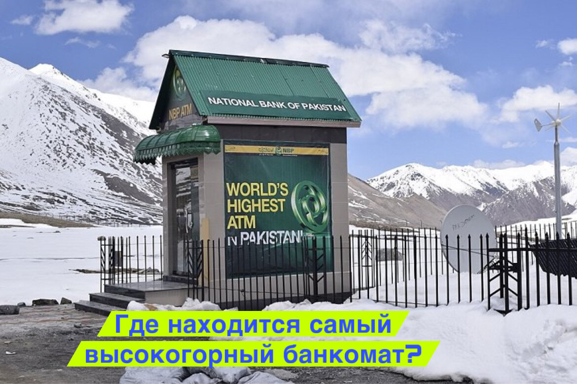 🔹 Самый высокогорный банкомат расположен в Пакистане на высоте 15 396 футов (4693 м). Банкомат принадлежит Национальному банку Пакистана на перевале Хунджераб в Гилгит-Балтистане и был открыт в 2016 году.