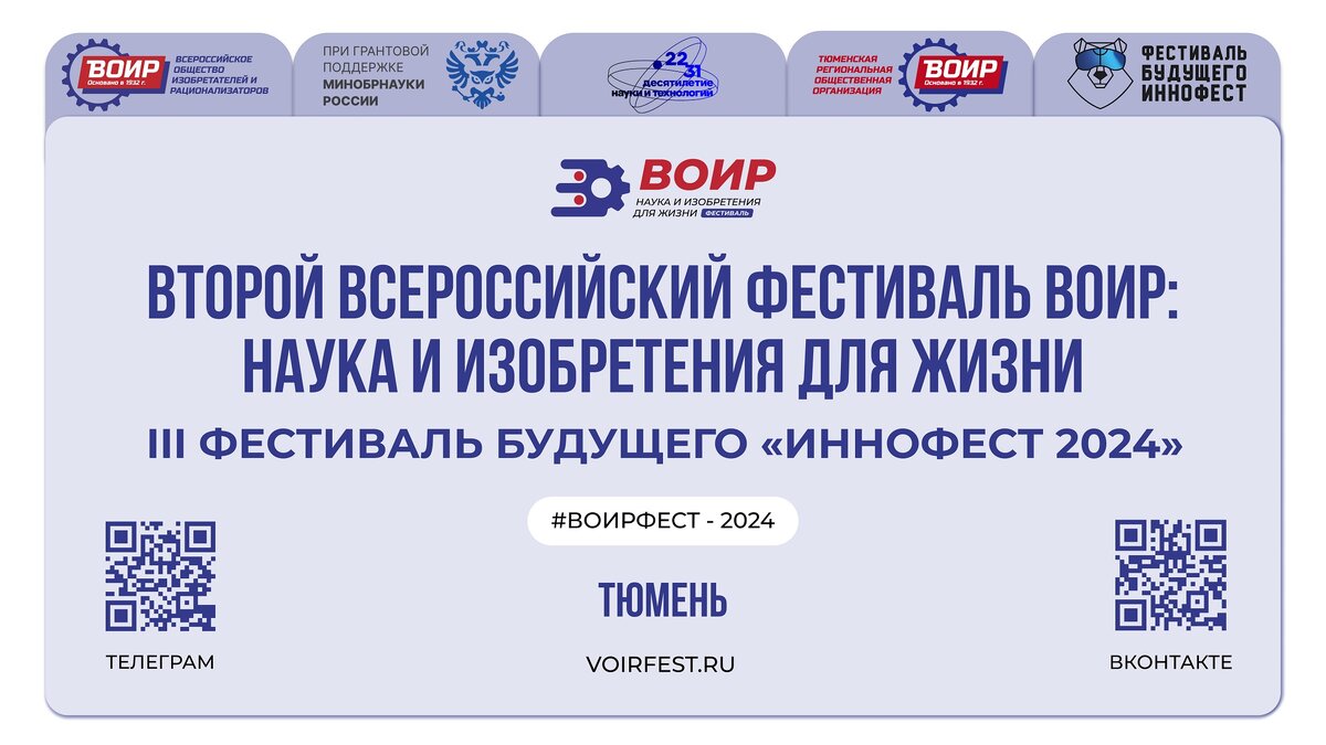 Стартует фестиваль 22 мая в 14 часов по тюменскому времени в «Западно-Сибирском инновационном центре» (г. Тюмень, ул. Республики, 142). Фестиваль будущего «Иннофест 2024» станет первым открывающим мероприятиям II-го Всероссийского фестиваля ВОИР «Наука и изобретения для Жизни». Это главный фестиваль для российских учёных и изобретателей всех возрастов, благодаря которому можно не только привлечь внимание к своим разработкам, но и получить реальную помощь в патентовании и внедрении открытий и изобретений. Также в ходе мероприятия будет дан старт фестивалю «ТехноПредки: эволюция осознанного родительства», посвященный применению новых технологий в воспитании детей и организуемый детским технопарком «Кванториум». В программе первого дня фестиваля запланировано награждение победителей IV международного творческого конкурса «НеМагия: Биотех» и круглый стол «Развитие инновационного и изобретательского движения в Тюменской области – перспективы и точки роста»