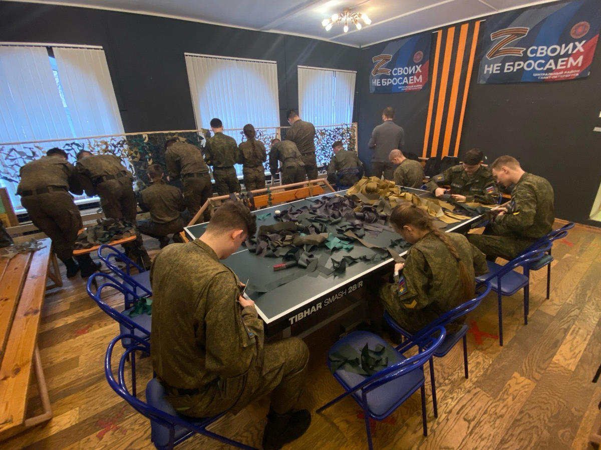 Студенты Военного учебного центра при Российском государственном гидрометеорологическом университете приняли участие в мастер-классе по плетению маскировочных сетей, организованном объединением подростково-молодежных клубов «Перспектива».