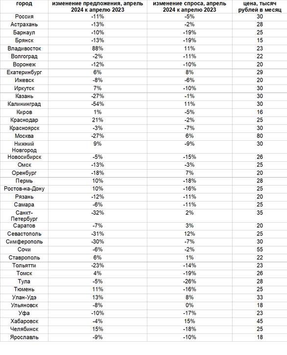 По итогам апреля 2024 г. в Нижнем Новгороде спрос на аренду квартир снизился на 9% в сравнении с показателями прошлого года. Объявлений о сдаче жилья в найм стало на 9% больше, сообщает «Авито Недвижимость». Средняя стоимость аренды квартир в Нижнем Новгороде в прошлом месяце составляла 30 тыс. руб. в месяц. В целом по России за год спрос на аренду уменьшился на 5% по всем форматам жилья. Чаще стали снимали граждане только квартиры-студии — на 15%. Предложение снизилось заметнее, чем спрос — на 11%. Самую доступнаю стоимость найма жилплощадей в апреле эксперты зафиксировали в Брянске (15 тыс. руб. в месяц), Кирове (16 тыс. руб.), Ярославле и Ульяновске (по 18 тыс. руб.). Наиболее высокие цены — в Москве (80 тыс. руб.), Сочи (55 тыс. руб.), Хабаровске (45 тыс. руб.) и Санкт-Петербурге (35 тыс. руб.). Как ранее писал NN.DK.RU, по итогам апреля 2024 г. спрос на аренду складов в Нижнем Новгороде стал выше на 37%, чем в аналогичный период прошлого года.