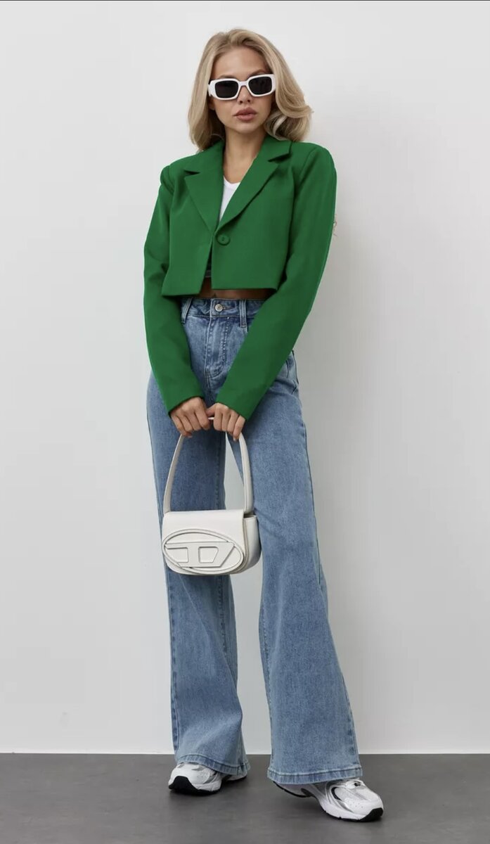 Интересен тот факт, что человеческий глаз, воспринимая порядка 8–10 млн цветов, больше всего оттенков различает именно в зелёном. Последние годы были актуальны его вариации: оливковый, фисташковый, матча, мятный. В этом сезоне трендом являются кричащие цвета, оттенки: Classic Green (яркая летняя зелень), Love Bird (яркий лайм, среднее между жёлтым и зелёным). Красиво и вкусно. Весь акцент падает на ярко-зеленый пиджак + еще тренд 2024 года: укороченый пиджак. Дополнение к образу: светлые джинсы клеш + оттеняет образ белые вещи это: топ, сумка и кроссовки. Лук смотрится лаконично и со вкусом. Образ молодой бизнес-вумен. Куда то по делам, на встречи с партнером и просто выйти попить кофе и погулять. Это про стиль и удобство. Не замечу еще один тренд который появился в этом году, лосины под классический пиджак. Выглядит стильно и очень даже уместно. Все это разбавляет нежный оливковый цвет пиджака и лосин, и в сочетании с белым топом и кроссовками, дается элегантность образу. Аксессуара
