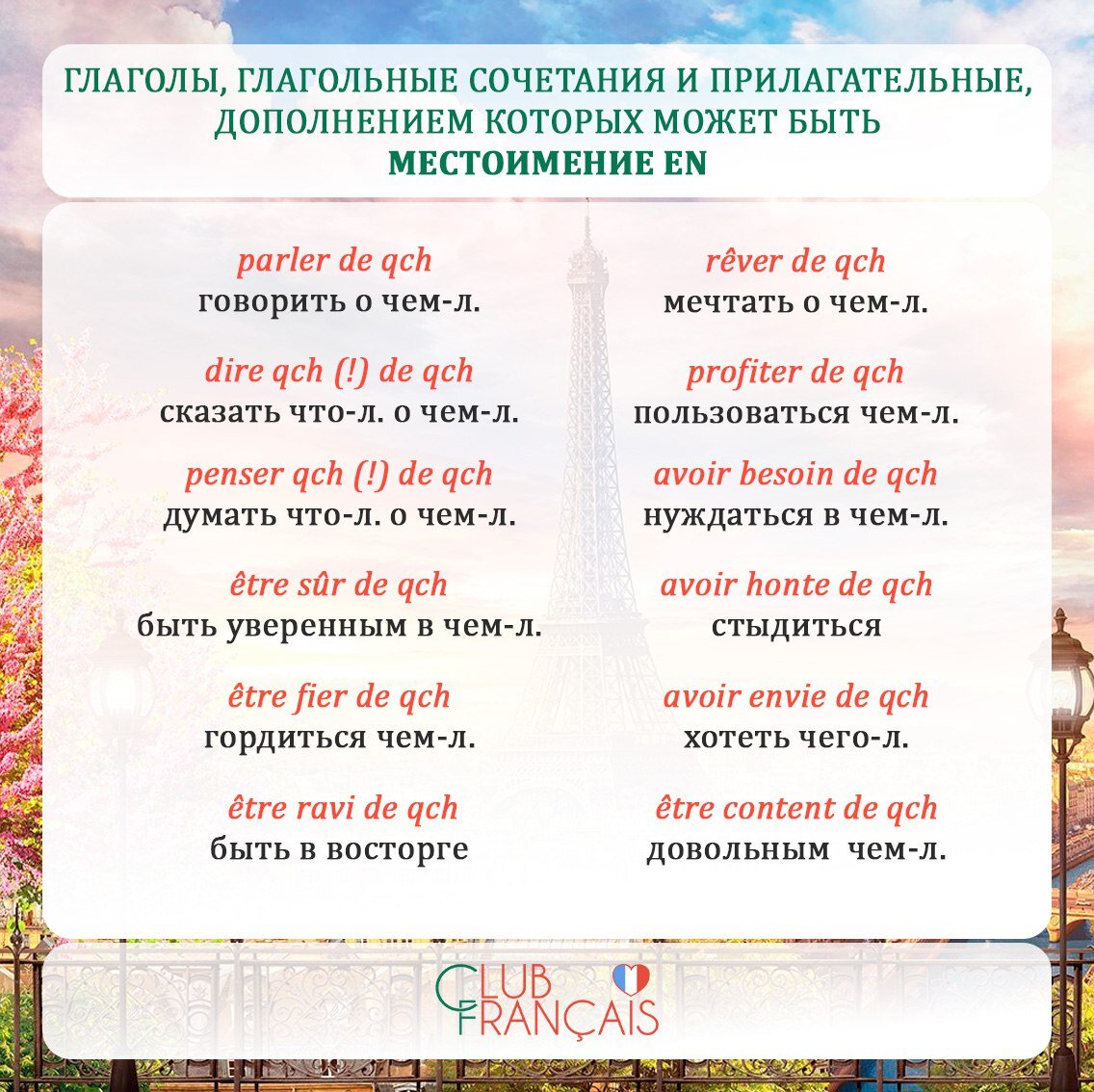 ❕На карточках - некоторые глаголы/глагольные сочетания и прилагательные, дополнением которых может быть en