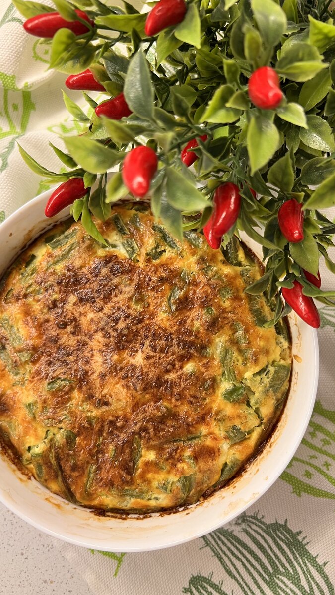 🥦🌟 Полезный рецепт омлета со стручковой фасолью 🌟🍳🥦 Сегодня приготовим вкусный и питательный омлет с добавлением ароматной стручковой фасоли. Это блюдо станет отличным выбором для здорового завтрака или лёгкого обеда. Готовы познакомиться с этим интересным рецептом? 🤩 Ингредиенты: ✅ 4 яйца 🥚🥚🥚🥚 ✅ 100 г стручковой фасоли ✅ 200 мл молока🥛 ✅ 50 г твёрдого сыра 🧀 ✅ соль, перец, специи по вкусу 🧂🌶️ **Приготовление:** 1. Начнем с приготовления фасоли. Вымойте и очистите стручки, затем нарежьте их на небольшие кусочки (у меня была замороженная😊). 2. В миске слегка взбейте (а лучше размешайте) яйца с молоком, солью, перцем и любимыми специями. Натрите на крупной терке сыр и добавьте к готовой яичной смеси. 3. Смажьте форму немного сливочным маслом, вылейте яичную смесь, затем можно добавить фасоль. И можно отправлять в разогретую духовку готовиться. 4. Готовится примерно 20-30 минут, все индивидуально. 5. Подавайте готовый омлет со стручковой фасолью горячим, посыпав по же