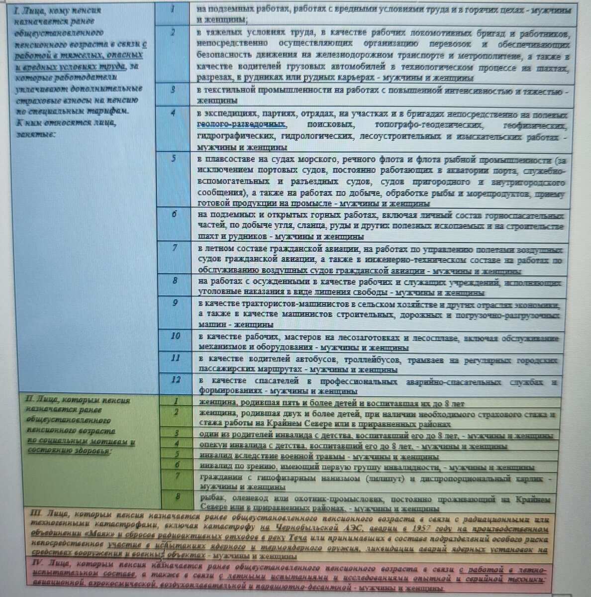 Общие перечень граждан, имеющих право на досрочный выход на пенсию