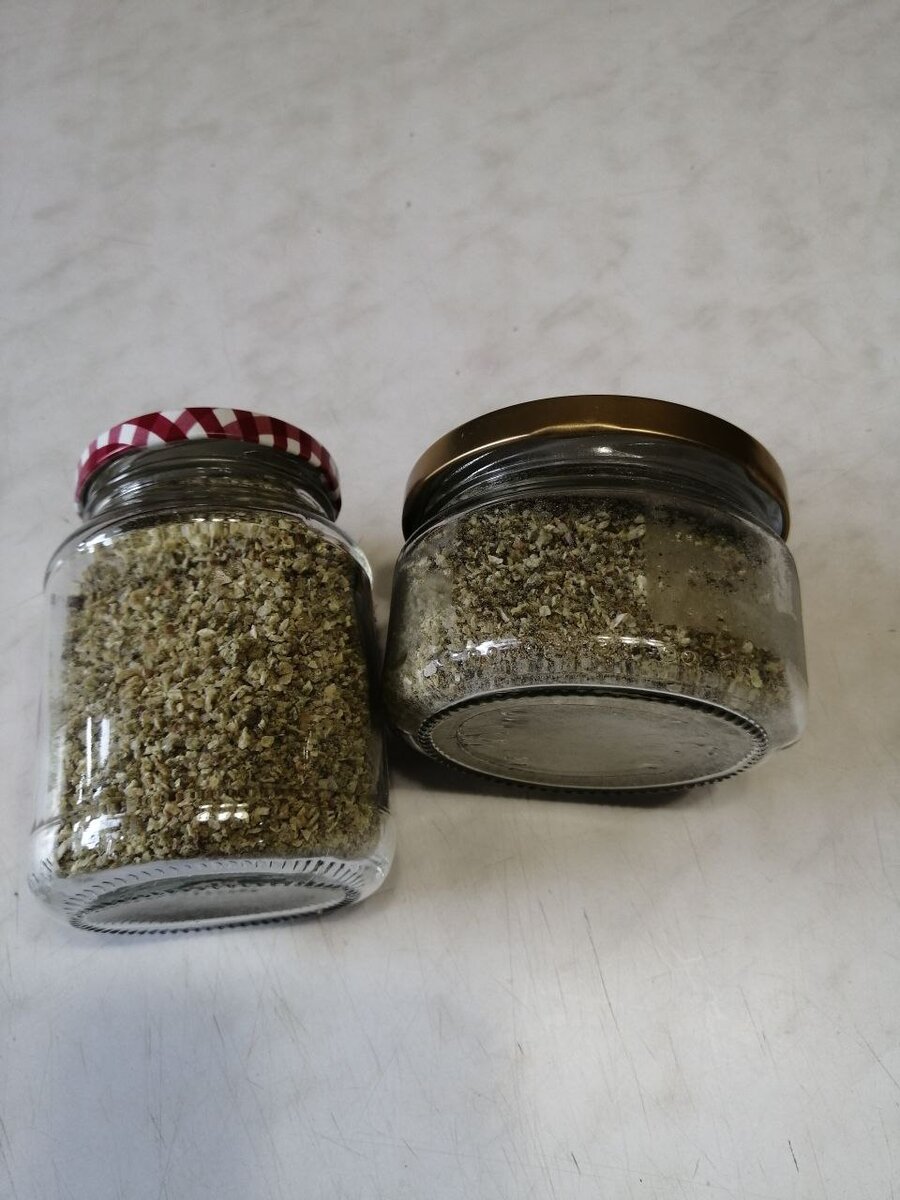 Давайте приготовим ароматную приправу из верхушек чесночных стрелок. Этот порошок с солью имеет более тонкий аромат по сравнению с ароматом от обычного чеснока. Я эту приправу использую для пикантности в различные соусы и салаты, а так же в качестве приправы к мясу. Нам нужны именно верхушки чесночных стрелок, сами стрелки можно заморозить или что то приготовить из них. Промываем наши верхушки под проточной водой. Промакиваем потолотенцем, чтоб немного просушить. Измельчаем стрелки в блендере или мясорубке В получившуюся смесь добавляем соль На 1 литр смеси примерно пол стакана соли Все хорошо перемешиваем Полученную смесь выкладываем на противень или в электроскшилку в лотки для пастилы. И сушим до полного высыхания. Я сушила в духовке при температуре 80 градусов с конвекцией Далее после сушки смесь нужно немного размолоть. Я это делала снова в блендере, так же можно размолоть в ступке или руками Полученный порошок раскладываем в стеклянную или другую тару. Приятного аппетита!