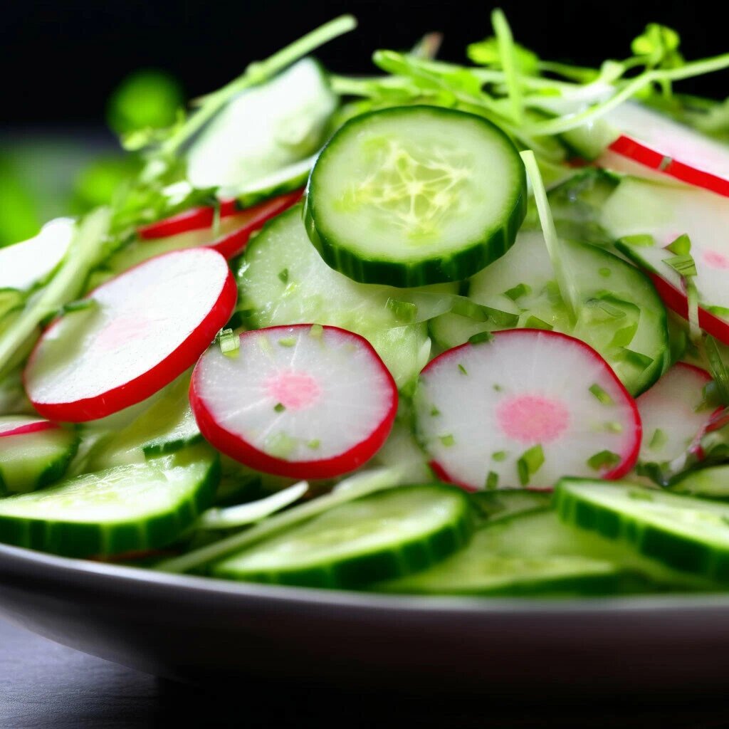 Вкусный, простой, полезный салат. Особенно понравиться тем, кто следит за фигурой. Ингредиенты: 300гр редиса 3 стебля лука-порея 200гр огурцов 300мл растительного масла 1ст ложка лимонного сока соль по вкусу Приготовление: