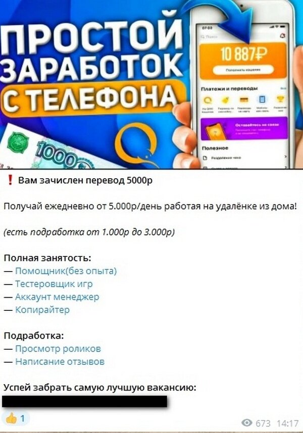 И снова мы на отправной точке. Надеюсь, в этот раз мне повезет. Объявления выглядят, конечно, несколько однообразно, но где наша не пропадала, тем более пока нет ощущения, что я иду по кругу. Сегодня стартуем по этому объявлению: Нас перенаправляет опять на бота Тут как ни странны есть вакансия копирайтера… оно мне привычнее всего, поэтому выбирает заветное название Вопреки ожиданиям заветный «тык» приводит на страницу очередных подписок. Глазик еще не дергается, но, по ощущениям, уже близко: И сразу две «морковки», одна другой завлекательнее Попытка получить наконец ясность в первой снова «перекидывает» нас на бота. Отвечаем на стандартные вопросы и пару мнут ждем и получаем вот такое предложение. Нажимаем на ссылку и… Нас закольцевали!.. По второй ссылке мы попадаем на канал, где парень ударяется в иную крайность – рассказывает, как все круто, но молодежным языком, обещая объяснить, как именно од зарабатывает бешеные (по моим меркам) деньги за пару часов в день. И так 2-3 полных обо