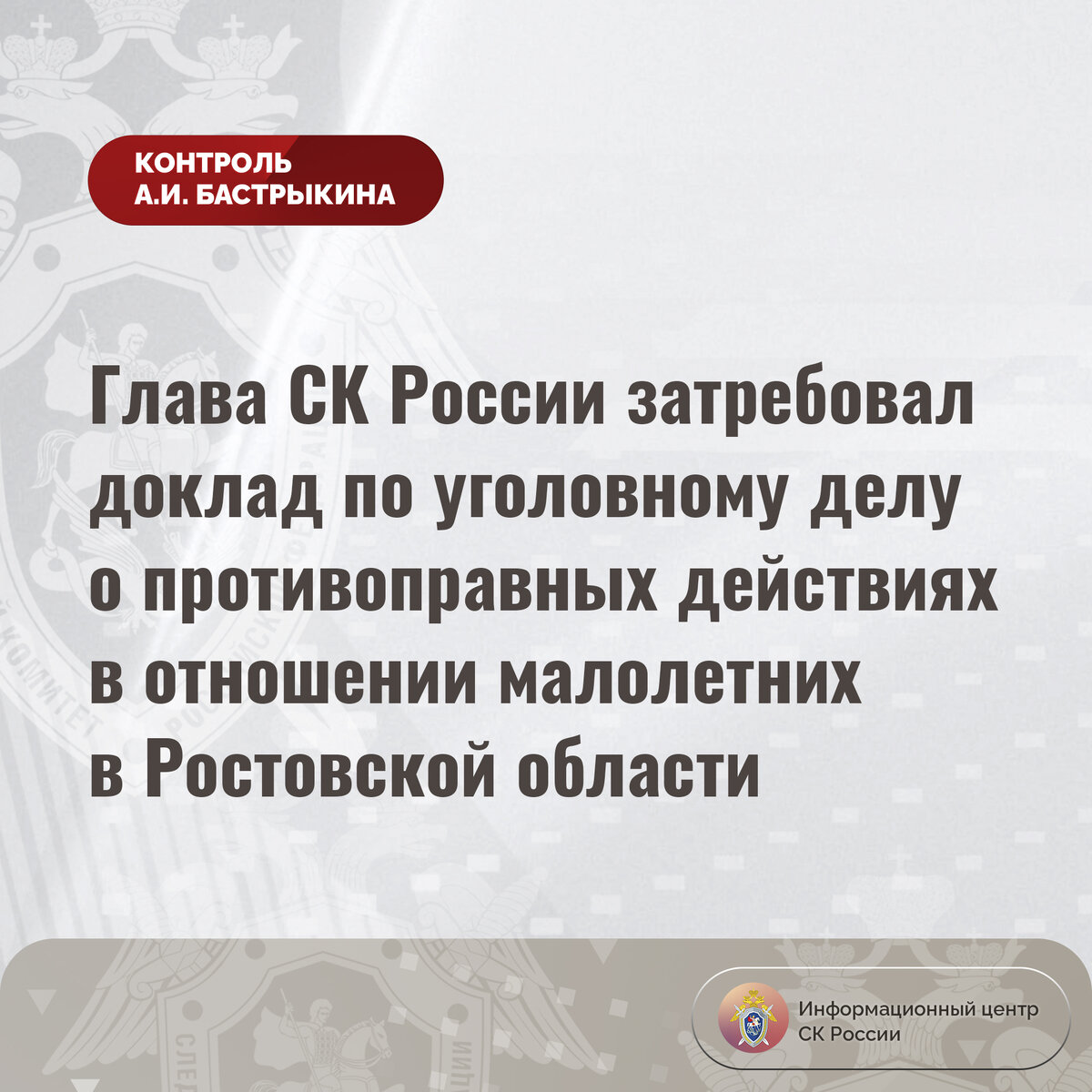 Председатель Следственного комитета Российской Федерации Александр Иванович Бастрыкин затребовал у руководителя СУ СК России по Ростовской области Аслана Гаруновича Хуаде доклад о ходе и результатах расследования уголовного дела.