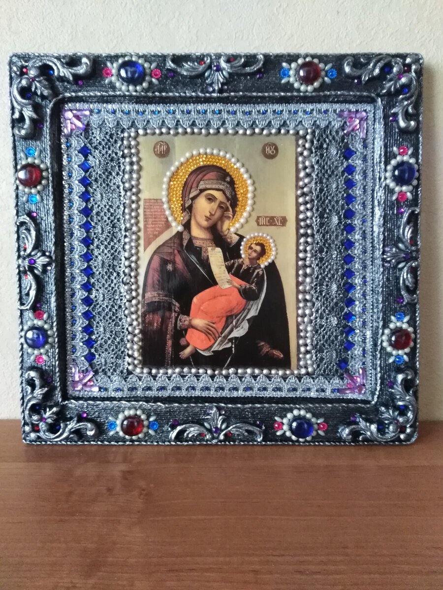 Икона «Утоли мои печали» восходит к типу «Одигитрия», то есть «Путеводительница». Однако особенности иконографии выделяют этот образ среди других, а невыразимо нежное выражение лиц Богородицы и Спасителя приближают его к Елеусе «Умилению». Икона представляет собой поясное изображение Богородицы, держащей Иисуса на колене или над ним. Вот вам и первое отличие от классической Одигитрии: там Пречистая Дева тоже изображается по пояс или погрудно, но она стоит и держит Сына на руках. Эта поза Богородицы оправдана физиологически, ведь ее левая или правая рука, на которой обычно, словно на престоле, восседает Иисус, прижата ко лбу. Пресвятая Мария будто пребывает в тяжких раздумьях: она размышляет о славном и полном страстей пути собственного дитяти. Однако она не забывает при этом и о каждом из нас. Иисус предстает перед нами в образе ребенка (часто даже отрока). Традиционный для Одигитрии жест благословения-хризмы отсутствует: Спаситель обеими руками держит развернутый список с призывом к к