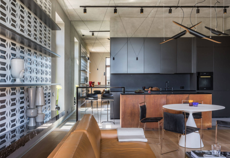 Родом из США, это стиль быстро адаптировалось к нашей стране. Кухни-гостиные в стиле лофт - отличный выбор для творческих людей, которые не хотят, чтобы их окружала показная роскошь.