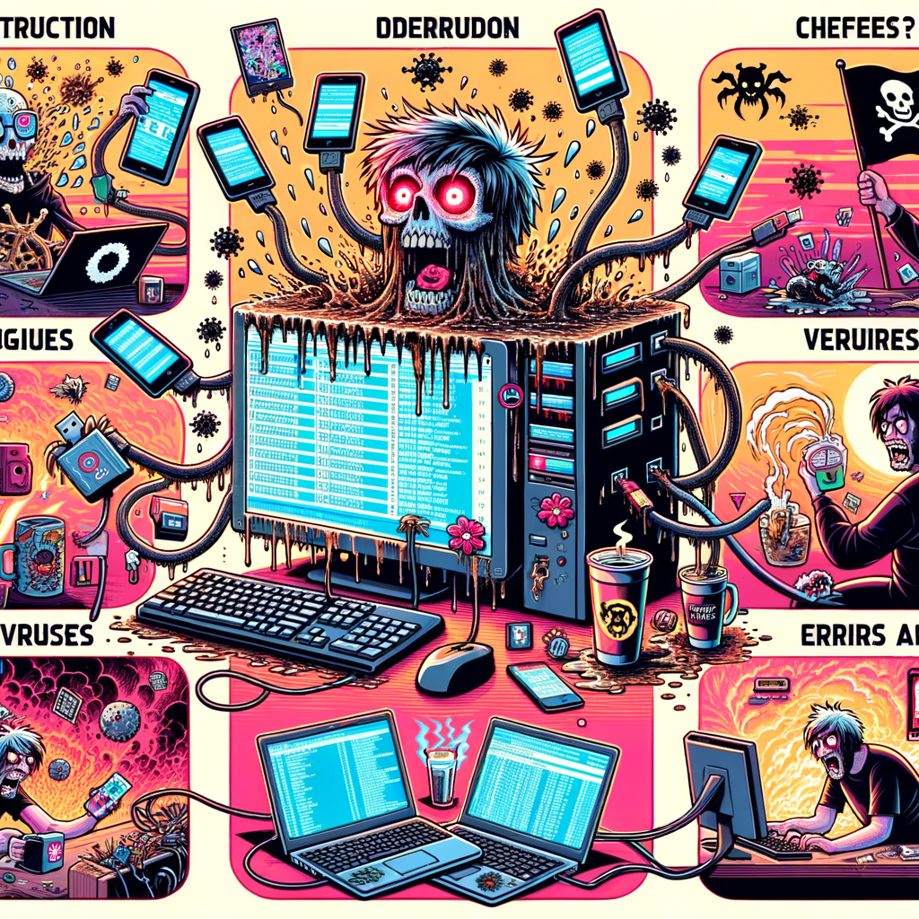 Перегрузите USB портами все слоты разом 💾: Пусть бедный ПК почувствует своё сверхназначение. Залейте его холодным кофе ☕: Оставьте «Co»-"ffee" в рабочей жизни. Запустите все видеокарточные игры одновременно 🎮: Чтобы он почувствовал весь потенциал кибер-галактик. Включите тысячу программ при включении 🔛: Пусть непредусмотренно работает как динозавр до последней битвы. Подключить компьютер к интернету у кишащего вирусами сайта 🦠: Настоящий ПК кризис дежа-ву. Загрузите пират контест каждого файла, что найдете 🏴☠️: Электронная этика – не ваша сильная сторона. Измените все настройки BIOS случайным образом 🔧: И выключите перед сохранением.