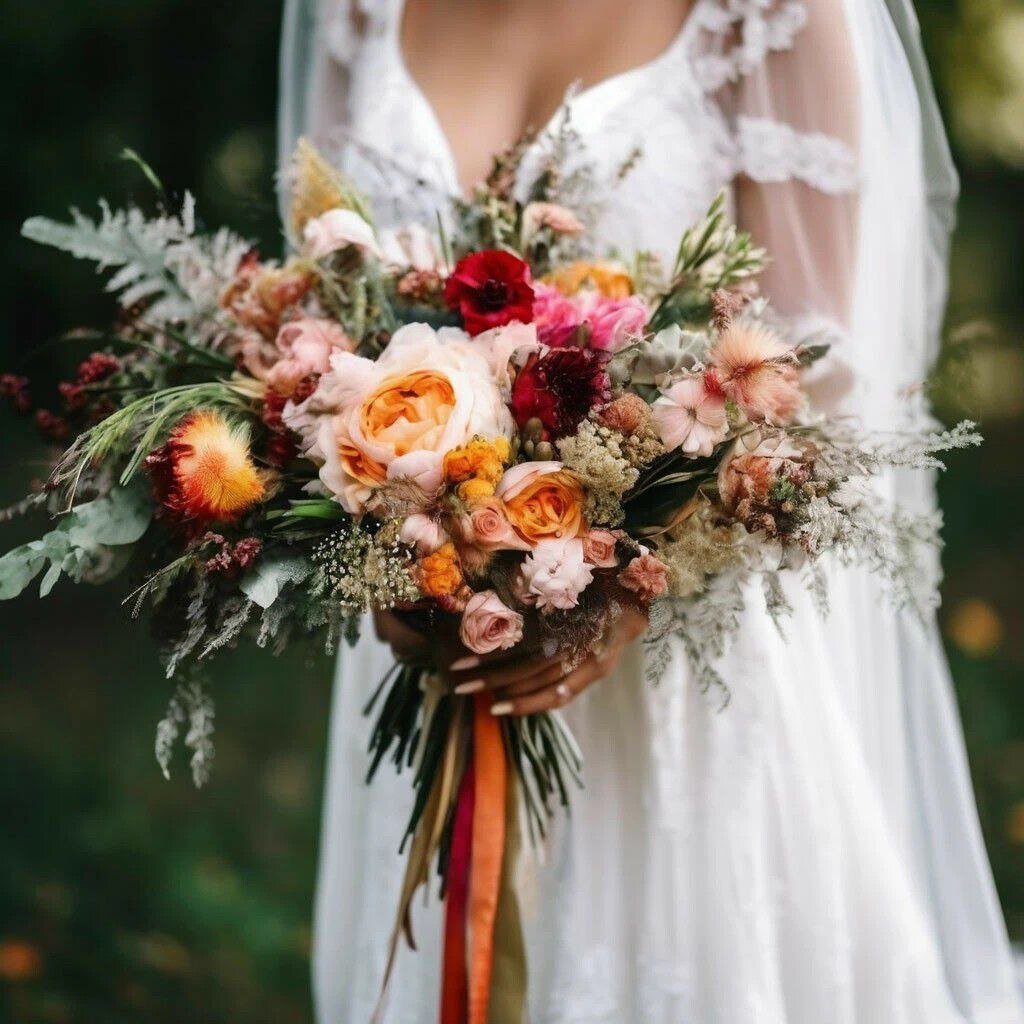 Стиль бохо (от слова “bohemian” богемный) в дизайне и моде характеризуется искусственной небрежностью, непринужденностью и свободой. Этот стиль стал очень популярен на свадебных церемониях, что в свою очередь привело к созданию флористики в бохо-стиле. Из-за сочетания гламурности с простотой и наивностью, в котором взаимодействуют друг с другом контрастные детали и мелкие элементы, стиль бохо выглядит очень эффектно. Рассмотрим как этот стиль отражается в свадебных букетах. Что такое стиль бохо и как применить на свадьбе? Творческие и неординарные молодожены выбирают стиль бохо для свадебной церемонии, потому что в нем сочетается множество разных стилей. Невеста в стиле бохо смотрится как лесная нимфа. Для этого образа подбирают летящее платье и распущенные волосы. А дизайн интерьера должен быть приближен к природе. Свадебные букеты объединяют в себе различные текстуры и типы цветов, включая дикие цветы, зелень и ветки деревьев. В качестве декоративных элементов используют ленты, перь