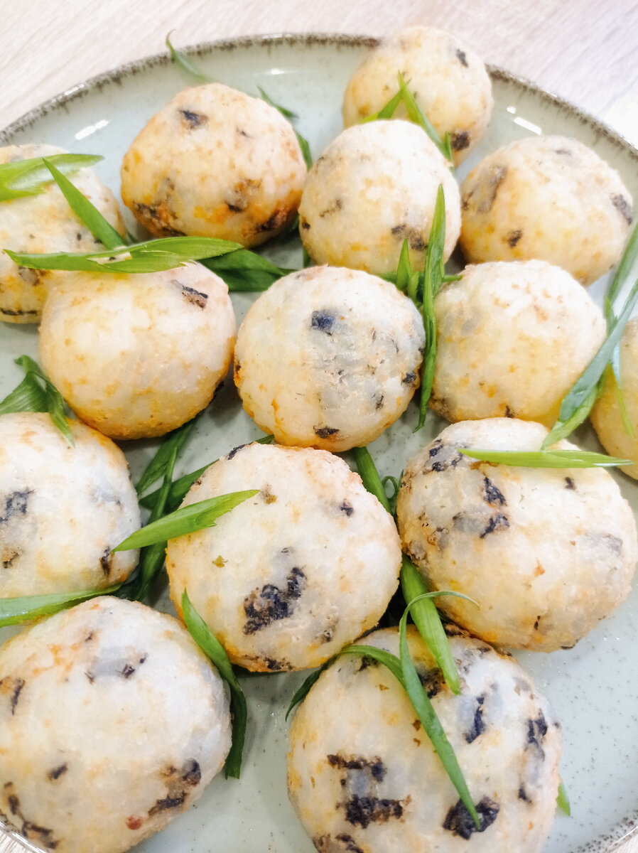 Почему самая любимая ? Да потому что простая, недорогая, можно собрать из всего что есть в холодильнике . Делаю часто. Блюдо подойдёт как для праздничного стола , так и для "чего-то хочу, чего не знаю", что у нас вечная проблема. Итак, нам понадобится : Рис отварной 300 грамм Творожный сыр 100 грамм Листья нори 1 штука Панировочные сухари Растительное масло для фритюра Для начинки: У меня с/с кета была Можно добавить любую рыбу, крабовые палочки, грибы, колбаску, сыр, тут только ваша фантазия Приготовление: Отварной рис смешать с творожным сыром , мелко нарезать лист нори. Я делала просто ножницами, все перемешать . Сформовать шарики, приплюснуть, выложить начинку, собрать в шарик. Когда шарики сформованы, обвалять их в панировочных сухарях и во фритюр. Всё. Вкусно , быстро. Обожаю