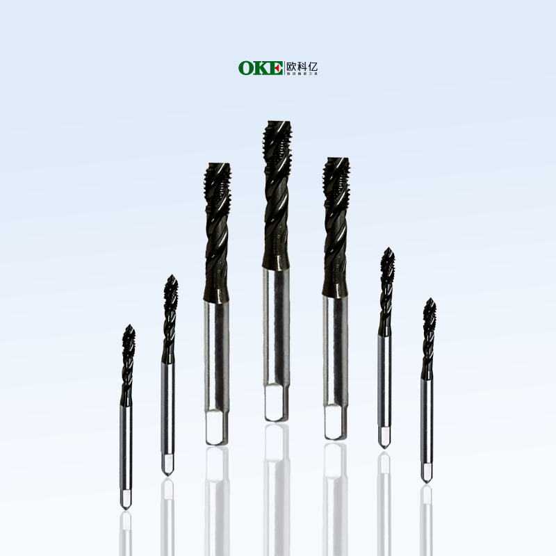 Метчики со спиральными канавками так же широко используются на производстве, применяются на токарных, сверлильных и резьбонарезных станках. Такие метчики применяются для нарезания резьбы в глухих отверстиях, благодаря укороченному заборному конусу, которая составляет 1-2 витка. Так же благодаря тому, что стружечная канавка закручена в спираль стружка во время нарезания резьбы выбрасывается вверх и не препятствует процессу резания. Угол спиральной канавки может быть разным от 15° до 42° в зависимости от назначения и условий работы метчика. Чем материал тверже, тем меньше угол наклона, и наоборот, чем мягче материал и пластичнее, тем угол наклона метчика должен быть больше. Благодаря этому метчики со спиральными канавками могут использоваться для нарезания резьбы в пластичных материалах с длинной стружкой (например, для нарезания резьбы в нержавеющей стали). Спиральные канавки позволяют метчику плавно заходить в отверстие, благодаря им, крутящий момент снижается порядка на 30%. Но у метчиков со спиральными канавками существуют и ограничения. Такие метчики не подходят для нарезания резьбы большого размера, особенно из материалов с высокой прочностью на растяжение. На больших диаметрах резьбы, крутящий момент возрастает и становиться огромным. Такой большой крутящий момент может легко привести к разрушению или даже поломке метчика. Поэтому обычно используемые метчики со спиральными канавками имеют спецификации от M2 до M36. Именно поэтому мы в ОКЕ считаем, что начиная с диаметра резьбы М22 лучше всего нарезать резьбы при помощи резьбовых пластин и державок. В нашей номенклатуре имеются метчики с М2 до М22.