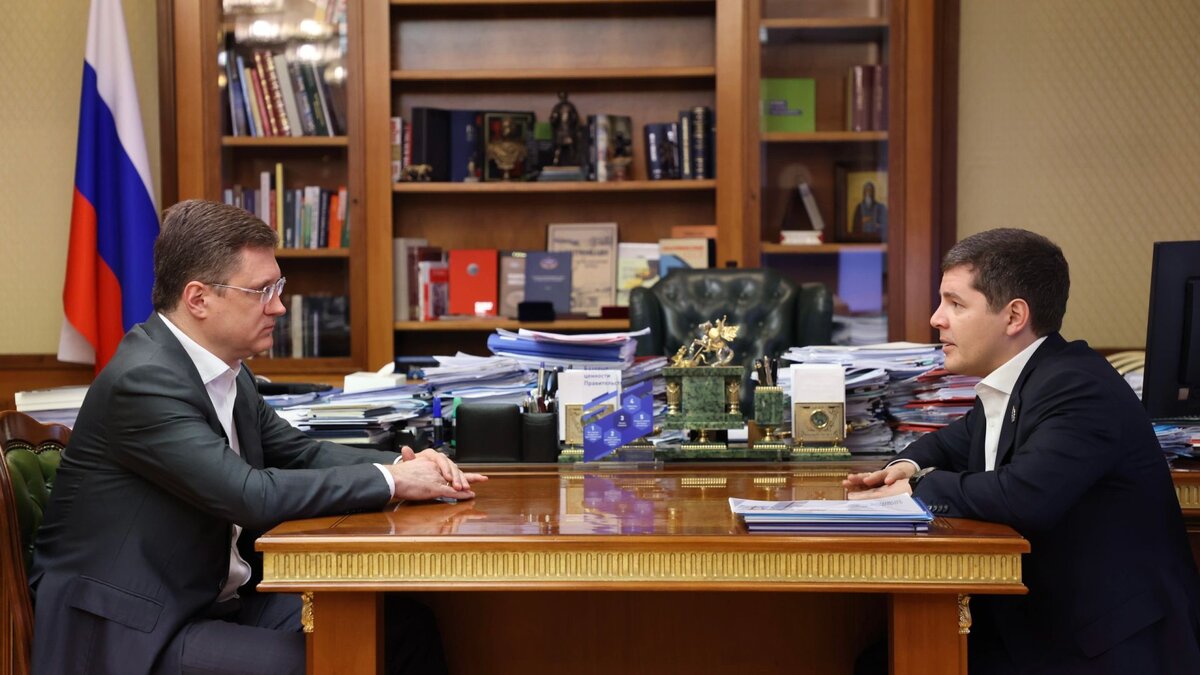 Губернатор ЯНАО Дмитрий Артюхов обсудил на встрече с зампредседателя правительства РФ Александром Новаком социально-экономическое развитие региона. Глава округа отметил, что регион демонстрирует устойчивое развитие. Объем промышленного производства вырос на 71% относительно допандемийного периода. Работа нефтегазового сектора тоже остается стабильной. Ямал сохраняет высокие позиции по экономическим показателям в рейтингах, превышая среднероссийские значения в 10 раз, что благоприятно сказывается на качестве жизни и инфраструктуре региона. «Ямал — крупнейший центр газодобычи в стране. Несмотря на все вызовы последних лет, экономика региона развивается стабильно, а крупнейшие нефтегазовые компании России продолжают воплощать у нас свои проекты, сохраняют социальные программы для северян», — написал губернатор в соцсетях. Александр Новак как председатель оргкомитета, ответственного за подготовку к празднованию 50-летия Нового Уренгоя в 2025 году, обсудил с Дмитрием Артюховым вопросы подго