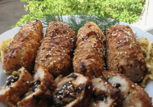 Если у вас есть дети, они точно оценят этот необычный способ подачи куриного филе. Маленькие рулетики на шпажках будут привлекательны и интересны для детей, а после приготовления они точно с удовольствием опустятся в это вкусное блюдо.