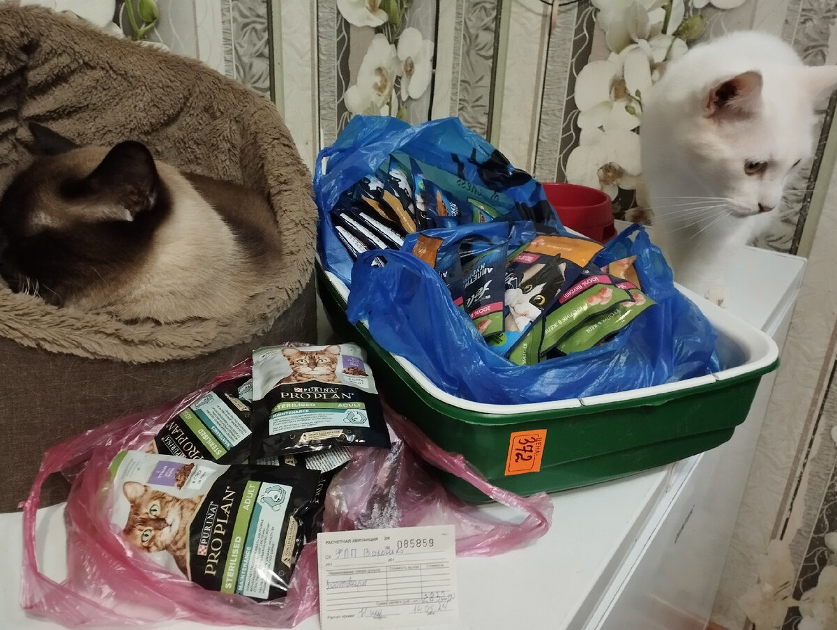 У нас в сельском мини-приюте Людмилы Ч. закончился мягкий корм! В последнее время наши хвостики его съедают очень быстро. Больных и беззубых старичков много, поэтому они и предпочитают кушать только его. Очень нужен про план для Цезаря, котик к сожалению кроме этого корма ничего ни ест, что создаёт для приюта очень большую проблему. Хозяйка не в состоянии обеспечивать этого красавца по его запросам, кроме того, обидно за других больных котиков. Почему он должен кушать именно про план, а другие перебиваться кто чем. Но к сожалению другого выхода у нас нет! Цезарь ест только про план! Сухого корма осталось з кг в остатке. Возвращаясь сегодня с вет клиники мы смоли купить совсем немного мягкого и только для больных, а также лекарства для кошечки и горшок, а то наши старые горшки уже все выходят из строя, а заменять не на что. К сожалению это всё. Все средства которые у нас были потратили на оплату такси и услуги ветеринара за обследование Люси. Друзья! Пожалуйста помогите! Через день наш