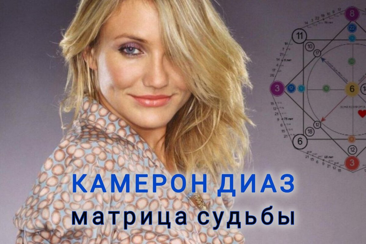 Давайте же посмотрим, какие энергии, заложенные в дате рождения Камерон Диаз, помогли ей достичь всех высот Ее дата рождения — 30.08.1972. Делись в комментариях - есть у тебя точки-совпадения с твоими энергиями?! Что помогло ей проявить свой творческий талант: 3 энергия дня рождения говорит о том, что Камерон очень по-женски сильная, привлекательная, харизматичная особа, у нее хорошие манеры, она всегда аккуратна, способна к приумножению всего, к чему прикасается 6 энергия в точке комфорта говорит о том, что ее наполняет общение с людьми, созерцание прекрасного, что ей важно заниматься только тем, что она любит 15 и 20 энергии на сердечной чакре, которые раскрывают творческие способности через публичную деятельность, наведение красоты, порядка и уюта во всем от внешности до окружающего пространства 19 энергия в точке Задачи души одарила ее умением выбирать занятия, приносящие удовольствие. Один из ее девизов по жизни гласит: «Я не делаю что-то только потому, что так принято в обществе»