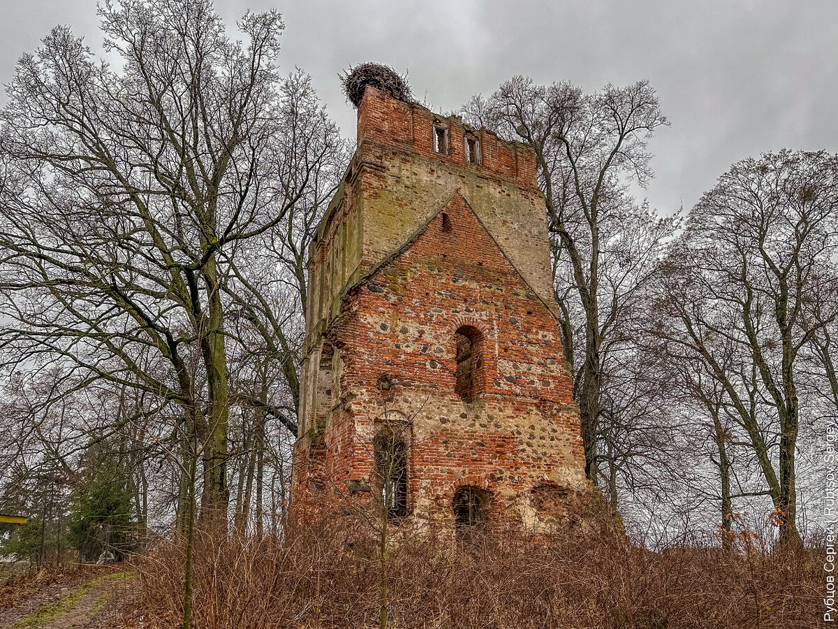 И вот наше путешествие по Калининградской области подходит к концу и предпоследней его точкой является кирха Гольдбаха в Славинске, от которой сохранилась лишь башня да фрагменты стен. Возвели кирху в 14 веке, как это часто было принято, частично из кирпича, а частично из валунов, поэтому местные церкви и сохранились до наших дней. В 1706 году частично перестраивалась и спокойно пережила бои 1945 года, но настало послевоенное советское время. Разумеется, зданию сразу нашли более достойное применение – сделав склад. В середине 70-х здание и вовсе становится заброшенным, что быстро приводит к обрушению крыши. Сейчас, конечно, это объект культурного наследия регионального значения, охраняется государством и прочее, что там часто пишут на бумажках, но мы-то все видим своими глазами. Координаты кирхи Гольдбаха: 54.752974, 21.082249 Ну вот, впереди всего одна последняя точка и самолет домой, со всеми местами, которые мы успели посетить на 4 дня, можно ознакомиться по ссылке ниже: