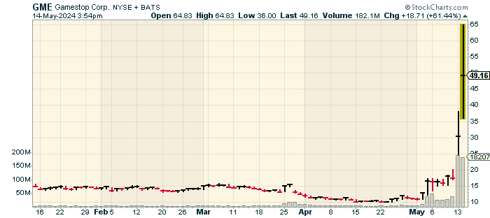 В начале недели акции GameStop ($GME ) взлетели на 74%. В какой-то момент акции во вторник выросли ещё на 110%, что означает, что они удвоились после взрывного ралли в понедельник.