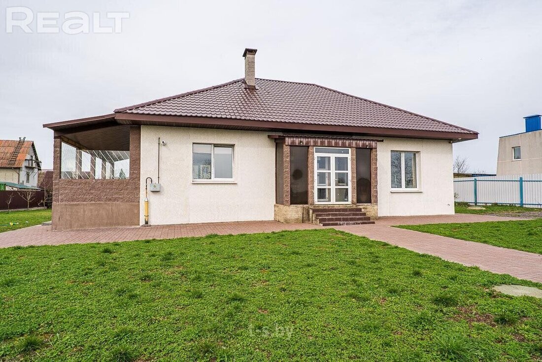 В Дзержинском районе продается большой дом для жизни. После покупки в нем остается мебель и техника, а на участке уже все подготовлено к тому, чтобы новые владельцы вырастили свой первый урожай. Цена квадратного метра здесь заманчивая - почти 572 доллара. Показываем, как выглядит коттедж. Дом располагается в агрогородке Гричино в Дзержинском районе - в 18 км от МКАД. Его построили из газосиликатных блоков в 2019 году в два этажа. На крыше лежит металлочерепица. Общая площадь дома - 244,7 м². На первом этаже разместилась просторная кухня-гостиная с выходом на крытую террасу. Тут есть мебель и техника. Дом подойдет для семьи с детьми, так как здесь имеются три обставленные спальни. Санузел - совмещенный, облицован плиткой. В доме проведен газ. Вода из скважины. Сделана местная канализация (станция глубокой очистки). Участок занимает 13,95 сотки. Он огорожен. На территории есть баня, беседка, установлены парники. Дом стоит в районе коттеджной застройки с удобными подъездными путями. Его с