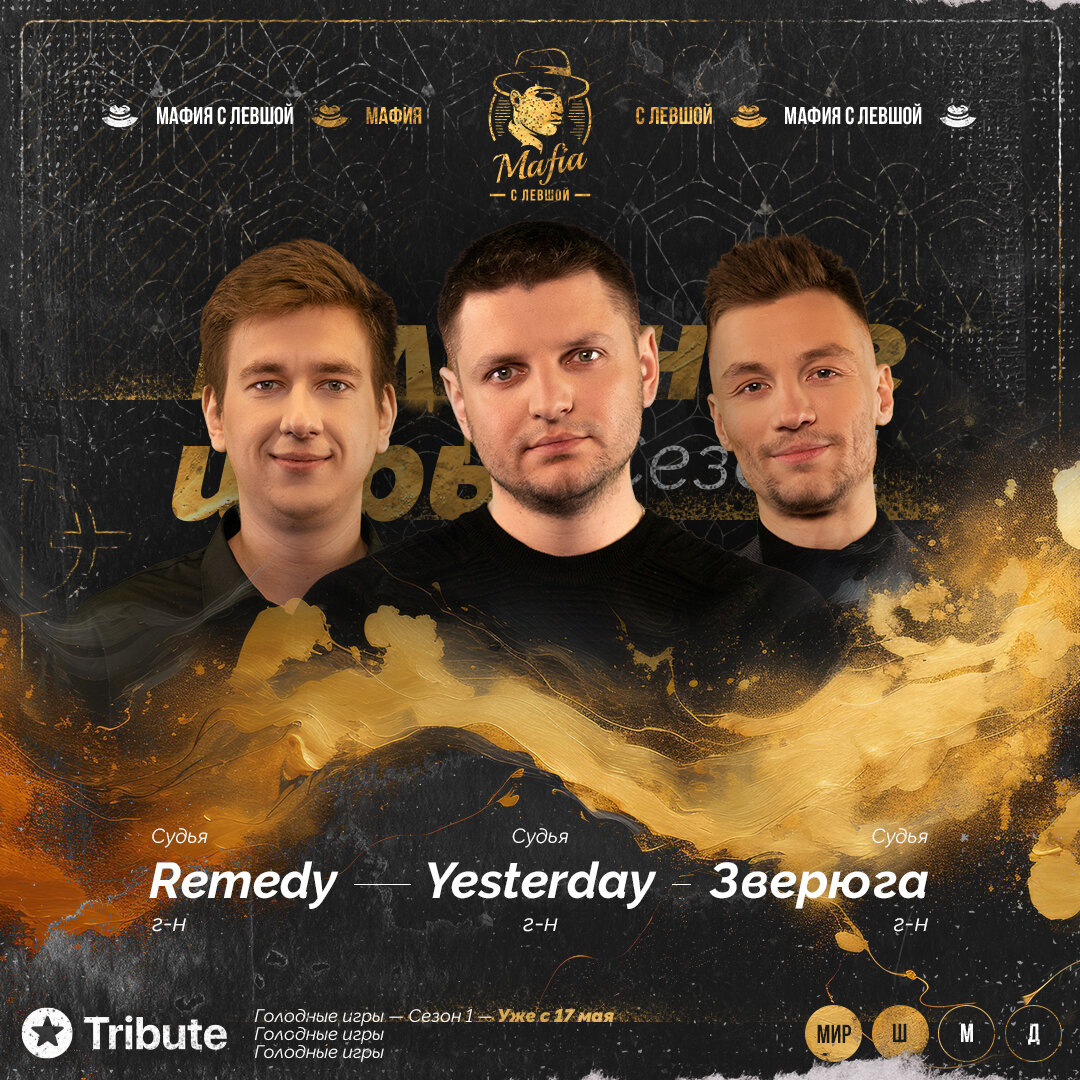 Встречайте очень неожиданное, но безумно запоминающиеся трио! В роли главного судьи выступает г-н Yesterday, который уже не раз был в роли судьи турниров проекта, а для многих является примером крутого судейства. Второй судья, которого многие знают не только по турнирам на канале «Мафия с Левшой», но и по проекту Лиги «7+3» — г-н Remedy. Он не раз рекомендовал себя в роли хорошего судьи и приносил в обсуждения новые аргументы. И наконец… Поприветствуем в роли судьи уже знакомого зрителям участника — г-на Зверюгу! Он на 100% готов показать себя в новом амплуа. Посмотрим, как ему удастся показать себя, и пожелаем удачи 💜