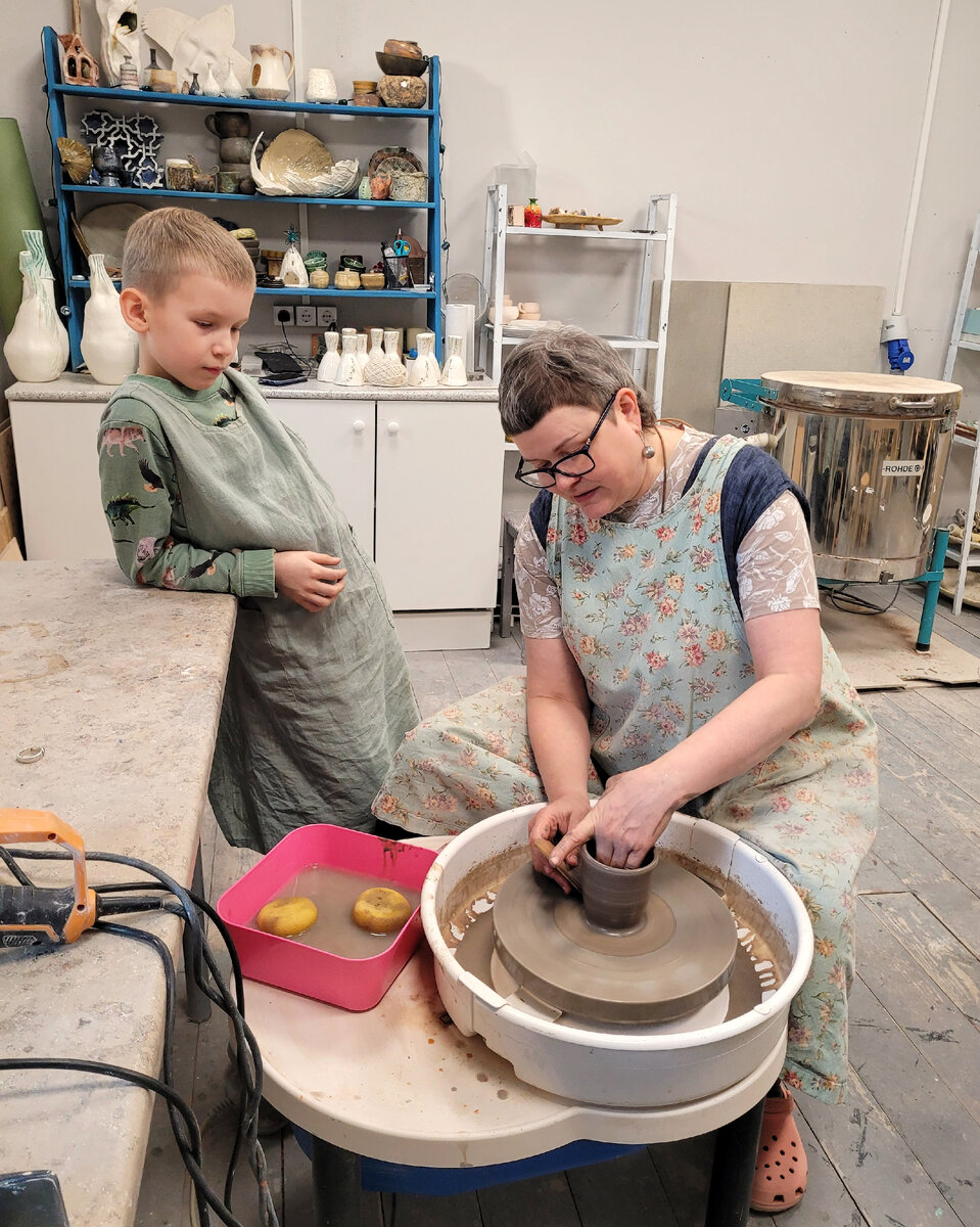 Началось всё с обычного мастер-класса, который я подарила сестре на Новый год. Это вообще отличная тема — когда в качестве подарка не вещи, а впечатления. Мы в последнее время подобное практикуем. Так вот к мастеру... ...Юле Моргуновской пошла моя Марина, и мы с сыном увязались следом. Интересно же попробовать. В итоге так увлеклись, что ходим и ходим. Причём нет цели освоить все хитрости, купить печь с гончарным кругом и самим стать керамистами))) вообще нет))) Просто нравится сам процесс! Это же чудо какое-то... ...вот был просто кусок глины, а потом ты начинаешь с ним работать, и ощущаешь, что он живой. Сопротивляется, когда пытаешься что-то с ним сделать на круге. Проявляет характер. Меняет свою форму на глазах. И в итоге становится чем-то осмысленным — чашкой, плошкой или вазой. Работа с цветными глазурями... ...тоже магия. Во время нанесения очень сложно представить, как это будет выглядеть после обжига. Потому что они все сначала серые и невзрачные. И ты накладываешь одно на дру