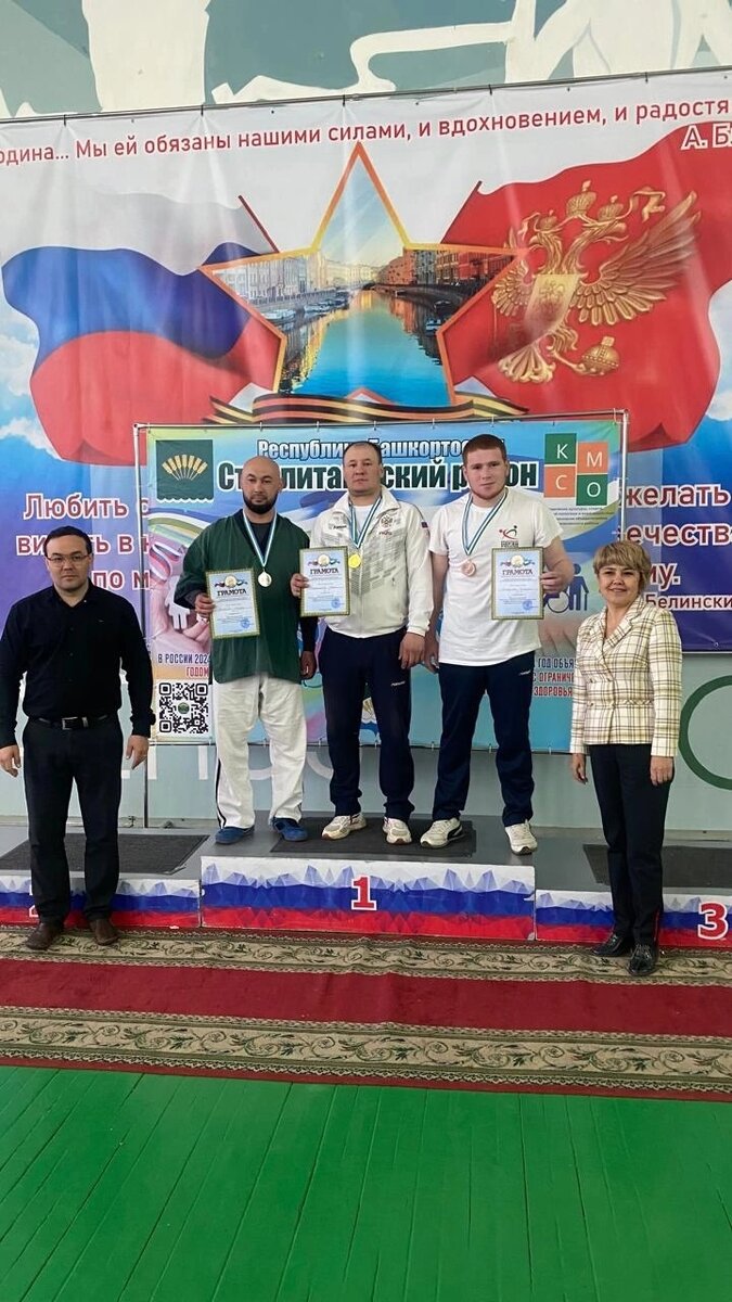 Команда Салаватского района завоевала бронзовые медали в финальных соревнованиях по борьбе "Куреш" в зачёт 32-х Сельских спортивных игр Республики Башкортостан. Соревнования прошли в городе Стерлитамаке 10-12 мая. Участвовали сильнейшие сборные из 20 районов. Нашу команду возглавлял экс-чемпион мира и России, председатель спорткомитета Салаватского района Наиль Мухаметьянов. Он стал победителем в своей весовой категории. Призовые места заняли: Аслан Галин, Фарит Хайретдинов, Артем Якимов, Салават Рахимов. В общем зачете упорной борьбе сборная Салаватского района заняла общекомандное 3 место! Поздравляем!