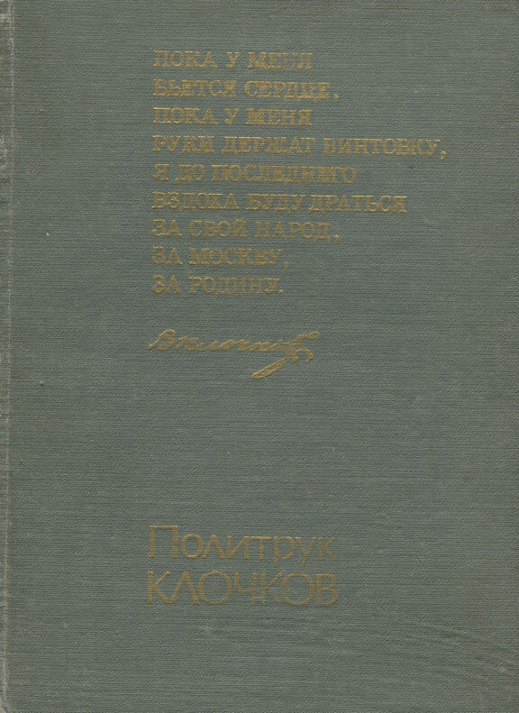 "Политрук Клочков" - именно так называется книга, которой я хочу с вами поделиться. Василий Георгиевич Клочков (1911–1941) — советский военнослужащий, политический руководитель 4-й роты 2-го батальона 1075-го стрелкового полка 316-й стрелковой дивизии 16-й армии Западного фронта.