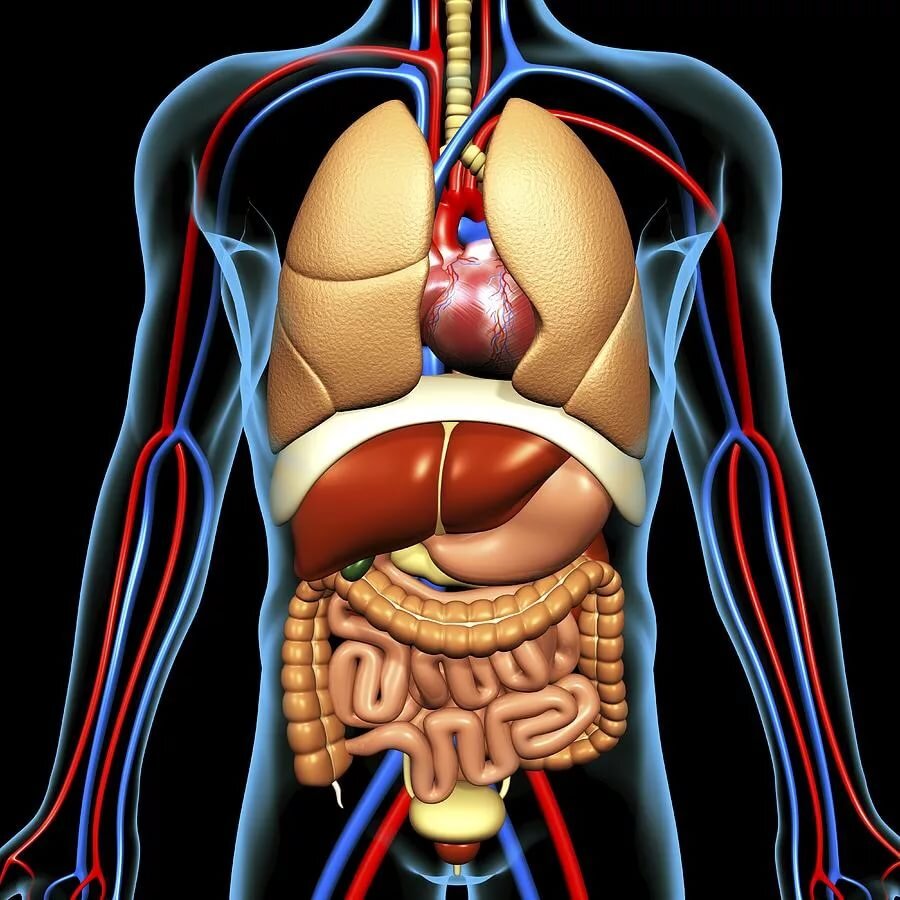 4. Сердечно-сосудистая система: Сердце перекачивает кровь по всему организму через сосуды, обеспечивая ткани кислородом и питательными веществами.