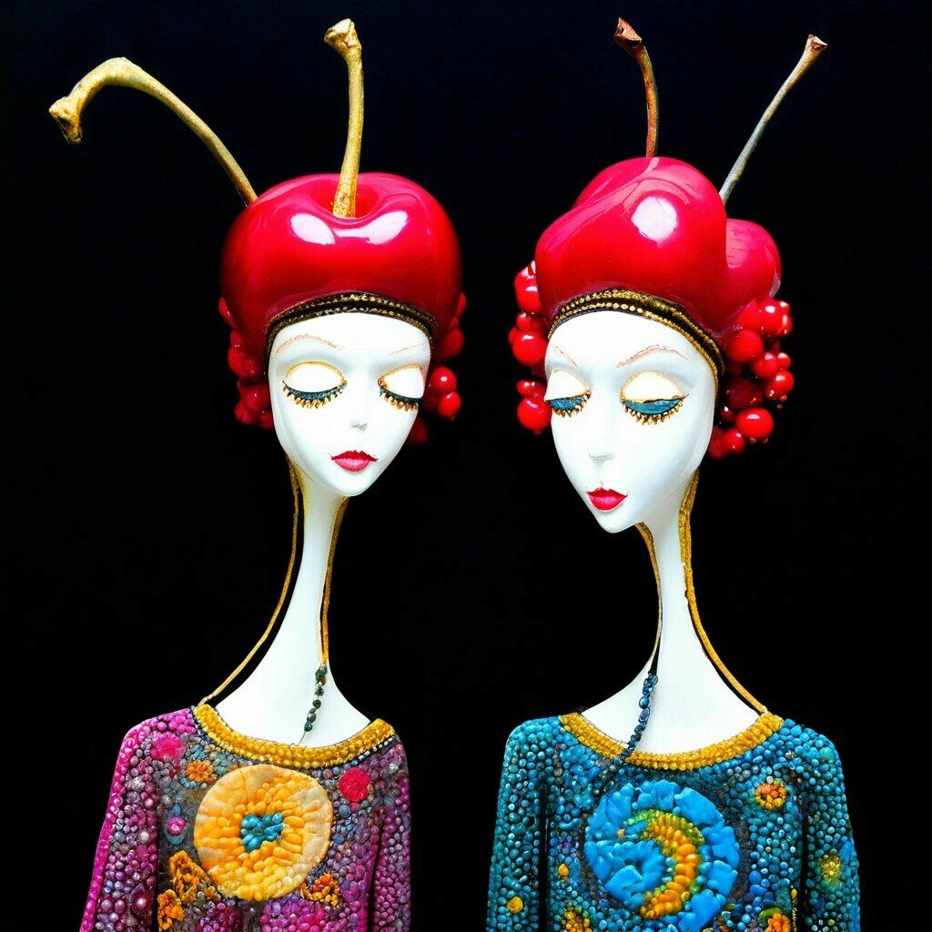Читая в детстве "Приключения Чиполлино", более всего впечатлилась образом близняшек-вишенок. Теперь же, дорвавшись до беспредельных изобразительных возможностей нейросети Шедеврум, закрываю гештальт созданием серии изображений Вишенок-графинь во всю силу нашего совместного воображения! Вот как описывает этих героинь их творец Джанни Родари: "Чопорные дамы-аристократки связаны между собой черенком, поэтому всё делают одновременно: двигаются, возмущаются, отдают приказы. Вечно всем недовольные, постоянно ругают тихого графа Вишенку, племянника." Очень приятно самой создать образы ярких литературных персонажей, спасибо Шедевруму. До новых встреч!