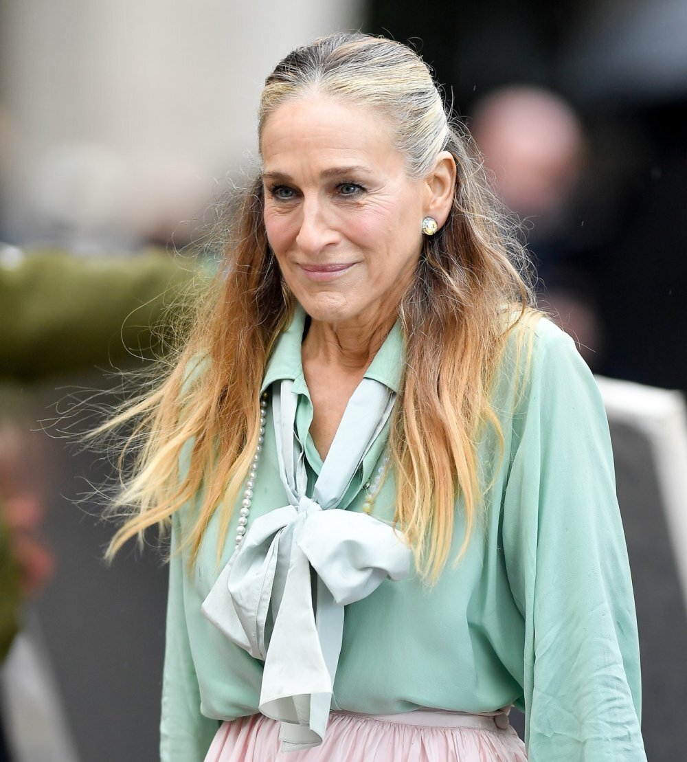 Жизнерадостная Сара Джессика Паркер вернулась на работу, то есть на съемки сериала «И просто так…» в Нью-Йорке. Актриса, которая в сериале «Секс в большом городе» вновь играет Кэрри Брэдшоу, персонажа, который сам сделал ее иконой моды, выглядела фантастически в очередном безупречном модном образе, причем в пастельных тонах на съемках третьего сезона, который фанаты ждут с нетерпением. Она объединила светло-зеленую развевающуюся рубашку неотразимого мятного оттенка от Saint Laurent со сладко-розовой юбкой от Ralph Lauren. А особенность этого образа, конечно же, была вдохновлена тщательно подобранными деталями, такими как сумка Jackie от Gucci, украшенная разноцветными кристаллами, а также туфли с фирменным знаком бренда Aquazzura, изысканные изделия которого также обожает Меган Маркл. Если эта очаровательная юбка вам что-то напомнила, знайте, что художники по костюмам шоу Молли Роджерс и Дэнни Сантьяго хотели воссоздать культовый образ Кэрри 1998 года из известных вступительных титр