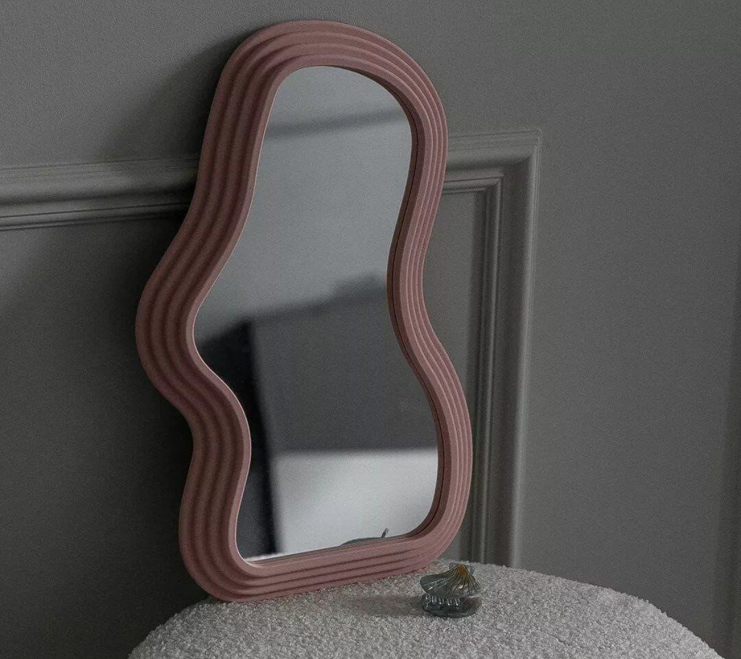 Декоративное настенное фигурное зеркало волной создано согласно современным тенденциям интерьерных решений. Его простота и в то же время уникальность выражена необычной овальной формой. Имеет размер 40 х 25 см. Наиболее подходящим декор будет смотреться в минималистичных стилистиках ванной или прихожей, а также спальне и для детской комнаты. Особенностью такого акрилового волнистого гримерного зеркальца является возможность использовать его не только в прямом назначении, но и как самостоятельный предмет интерьера