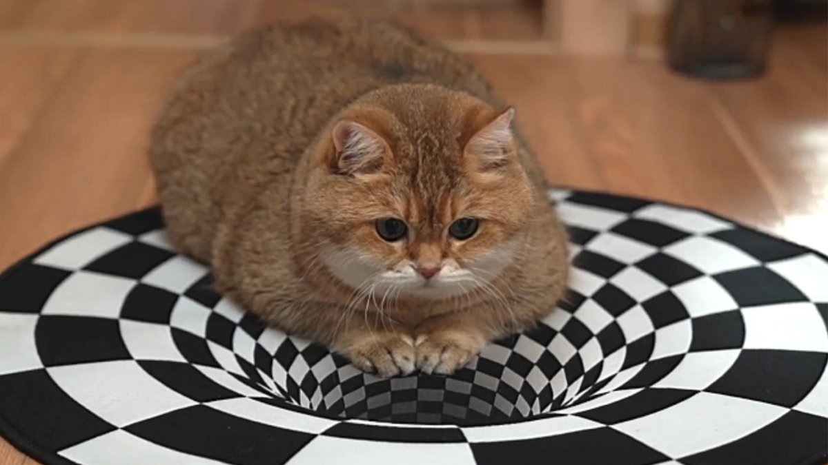 Кошки способны различать оптические иллюзии почти так же, как люди, — однако им не хватает критической оценки, чтобы быстро понять, что перед ними просто картинка. Например, когнитивный этолог Габриэла Смит доказала, что коты могут воспринимать зрительную иллюзию квадрата. Животные думают, что это настоящая коробка! Хозяйка двух котов тоже решила провести эксперимент и проверить, как ее коты отреагируют на оптическую иллюзию в виде воронки на полу. Сначала животные без особого интереса осмотрели наклейку — но вскоре стали присаживаться на край воронки и вглядываться в черную глубину. В итоге оба кота начали активно взаимодействовать с воронкой, будто пытаясь поймать невидимую добычу или скрытую возможность.