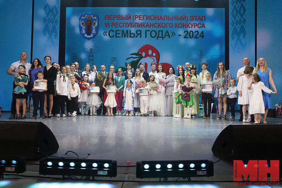 Региональный этап VI республиканского конкурса «Семья года» прошел в Минском городском дворце культуры 15 мая, передает корреспондент агентства «Минск-Новости». В конкурсе участвовали девять семей от каждого района столицы. Они разные, но всех объединили сплоченность, традиции, любовь к родному городу и Беларуси. — День семьи — один из самых красивых и трогательных праздников в году, — открыла церемонию первый заместитель министра труда и социальной защиты Наталия Павлюченко. — Семья окружает человека на протяжении всей жизни. Родные люди любят, поддерживают, дают силы жить, творить, трудиться. Она обратила внимание, что республиканский конкурс «Семья года» проходит в шестой раз. Он объединяет и сплачивает семьи, помогает сохранять историческую память. — В отборочных этапах приняли участие более 400 семей по всей Беларуси, — отметила Н. Павлюченко. — Они гордость государства, жизненный ориентир для многих белорусов. Председатель Минского городского Совета депутатов Артем Цуран высказал