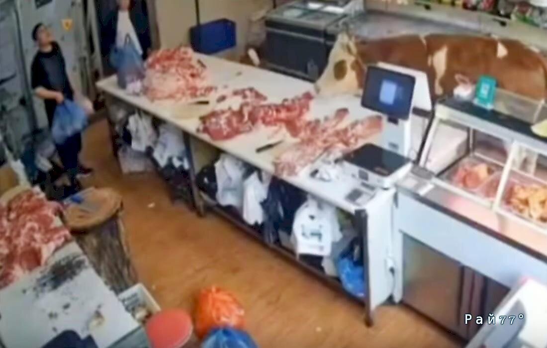 Странный инцидент был запечатлён 11 мая видеокамерой, установленной в магазине, специализирующемся на продаже мяса, находящемся в небольшом населённом пункте в Китае. Сбежавшая от хозяина бурёнка зашла в торговое заведение и обнаружила разложенные на столе куски мяса, которые ранее были её соплеменниками. Затем в кадре появился преследовавший животное местный фермер, накинувший верёвку на шею сбежавшей коровы и приложивший немало усилий, чтобы выпроводить её из магазина. После того, как к операции насильственного перемещения бурёнки подключился один из сотрудников магазина, беглый зверь в конечном итоге покинул помещение мясной лавки. Источник