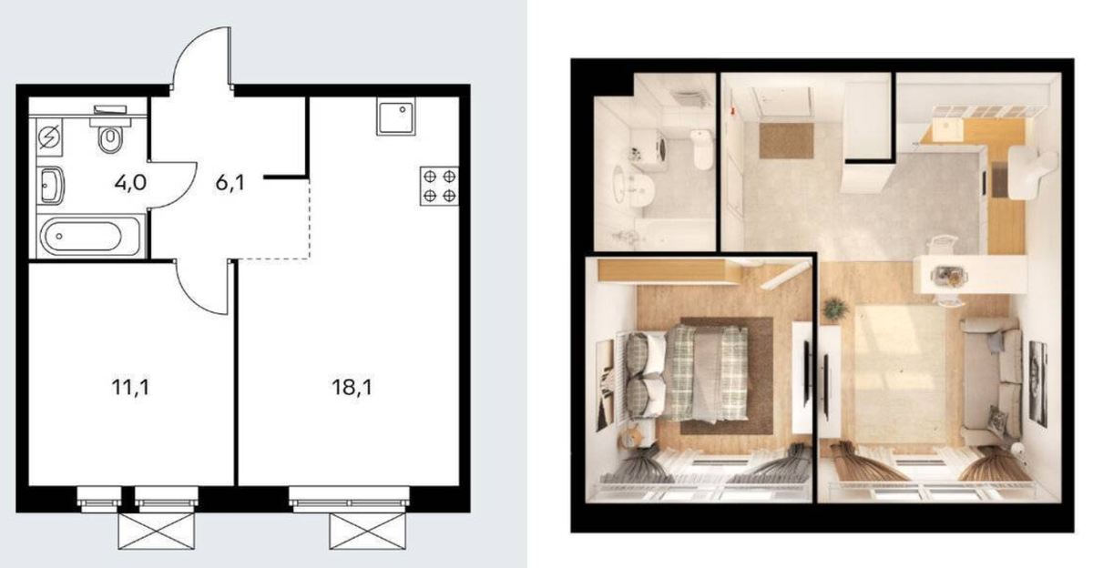 Если буквально следовать требованиям этого пункта, то планировки с площадью кухни = 14-18 м², при площади спальни 10 м² будут соответствовать требованиям по минимальной площади квартиры, но не будут соответствовать требованиям СП в части площади самих помещений.