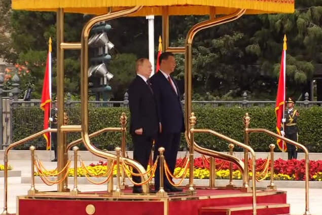Как предусмотрено дипломатическим протоколом, начало переговоров предваряет официальная церемония встречи. Российский лидер Владимир Путин прибыл в Дом народных собраний, находящийся на западной стороне площади Тяньаньмэнь в Пекине. Программа госвизита президента РФ в КНР официально начинается. В Доме народных собраний пройдут российско-китайские переговоры в узком и широком составе, а также встреча с премьером Госсовета Китая Ли Цяном. Согласно дипломатическому протоколу, перед началом переговоров проходит официальная церемония встречи. Председатель Китая Си Цзиньпин поджидал Путина на площади, где выстроился почетный караул. Президент России приехал на своем «Аурусе». Лидеры пожали друг другу руки, а затем вместе поприветствовали китайскую и российскую делегации. Путин и Си Цзиньпин затем поднялись на специально сооруженный помост с тентом и наблюдали за выступлением Военного оркестра Китая. На церемонии были исполнены гимны двух стран. После завершения 15-минутной церемонии лидеры п