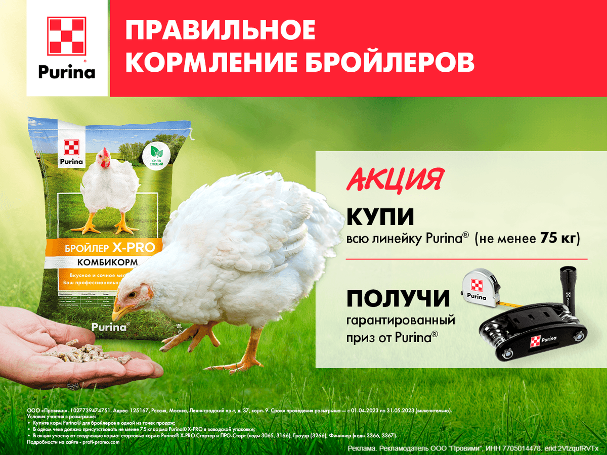 От чего зависит выгода выращивания бройлеров, для себя или на продажу? В первую очередь от кормления! Чем качественнее, богаче и сбалансированнее состав корма, тем лучше показатели. Мы отлично знаем корма бренда Purina® и всегда довольны их качеством. Кстати, в этом году они празднуют 10 лет в России, и до 31 мая у них проходит акция «10 лет кормим с любовью». Купите 75 кг корма для бройлеров – и получите гарантированный подарок: рулетку, фонарик или мультитул. Приятно и выгодно! Условия акции: в одном чеке должно присутствовать не менее 75 кг корма Purina® X-PRO в заводской упаковке – не на развес. В акции участвуют следующие корма: стартовые корма Purina® X-PRO Стартер и ПРО-Старт (коды 3065, 3166), Гроуэр (3266), Финишер (коды 3366, 3367). Акция проходит только среди розничных покупателей в точках продаж, более подробно с информацией вы можете ознакомиться на сайте https://profi-promo.com. Предлагаем узнать побольше о линейке Purina® X-PRO для бройлеров. Эти корма сбалансированы по