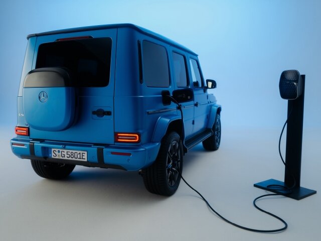 Улучшенные характеристики благодаря электрифицированному приводу, современным системам помощи, повышенному комфорту и дополнительной цифровизации: новый Mercedes-Benz G-Class впечатляет в любых условиях. Мировая премьера первой полностью электрической версии внедорожника уже состоялась. Он сохраняет характерный для бренда внешний вид. Новый электрический G -класс полностью соответствует традициям дизайна модельного ряда и имеет угловатый силуэт, включающий культовые элементы. Самым большим визуальным отличием от моделей с обычным приводом является дополнительная решетка радиатора черного цвета с анимированной световой полосой и встроенной хромированной окантовкой. В качестве элегантного акцента контур может быть подсвечен габаритным светом по запросу. Новый цвет South Sea Blue magno доступен исключительно для нового электрического G-класса. На автомобиле также есть множество деталей синего цвета. Например, специальная модель имеет синие тормозные суппорты спереди и сзади. Также есть аэ