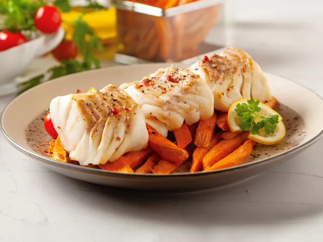 Для этого рецепта подойдут как стейки на кости, так и филе трески — первые будут жариться чуть дольше.