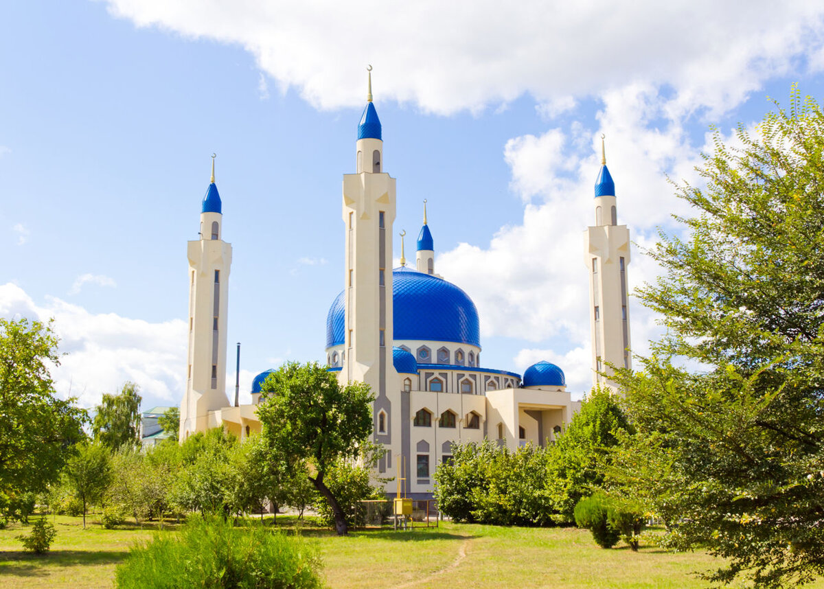 Соборная мечеть, расположившаяся в центре Майкопа, является одним из главных архитектурных украшений города. Её белоснежные минареты и большой синий купол видны ещё издалека, из-за чего у каждого проходящего мимо туриста возникает желание подойти и разглядеть святыню поближе. В архитектурном плане соборная мечеть сочетает изящество и традиционную для ислама скромность, благодаря чему внешнее и внутреннее убранства выглядят гармонично и не обременены лишним декором. Соборная мечеть — это не просто мечеть, а символ города, поэтому обязательно включите эту достопримечательность в маршрут.