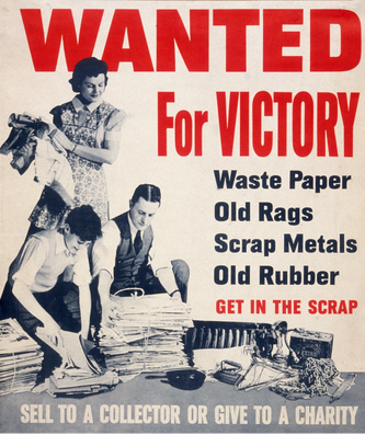 Война сделала переработку отходов патриотичной. Семьи жертвовали банки, кастрюли, сковородки и многое другое. Дети собирали металлолом, а фермеры снимали запасной металл со своей старой техники, чтобы удовлетворить потребности военных. Эти новые привычки открыли двери новой отрасли, когда война закончилась и солдаты вернулись домой. Например, компании, занимающиеся металлоломом, продолжали собирать железо, сталь и алюминий для автомобильной промышленности, поскольку количество автомобилей в США удвоилось с 25,8 млн в 1945 году до 52,1 млн в 1955 году.