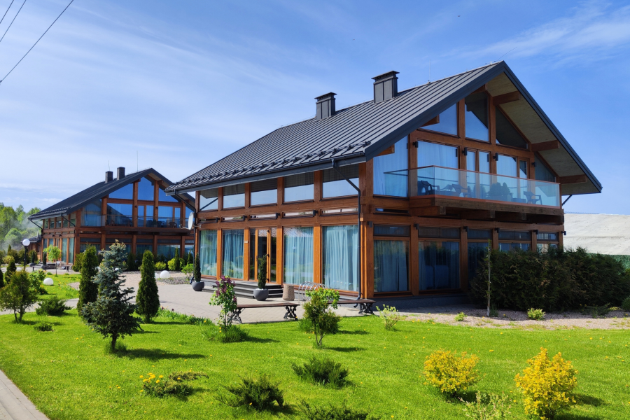 Подходящий вам вариант размещения можно выбрать на сайте, посмотреть все варианты, что в них входит, фото и даже 3D-обзор. Конечно же, можно сразу выбрать нужные вам даты и забронировать понравившийся домик. Что касается стоимости: коттеджи от 850 BYN в сутки (вместимость до 20 человек), семейные дома от 420 BYN (до 6 человек) и номера от 330 BYN (до 5 человек). В стоимость входят или только завтраки или "Полный пансион" с заказным меню. Бронировать лучше сильно заранее, так как самые уютные домики с живописными видами из окон очень быстро разбирают.