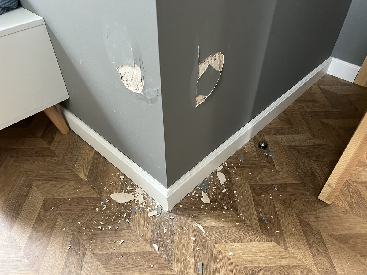 А потом еще три дня приходили - то шпаклевать, то грунтовать, то красить! По итогу, стену восстановили, сейчас только легкая разница оттенков краски говорит о том, что тут были такие разрушения! Листаем!