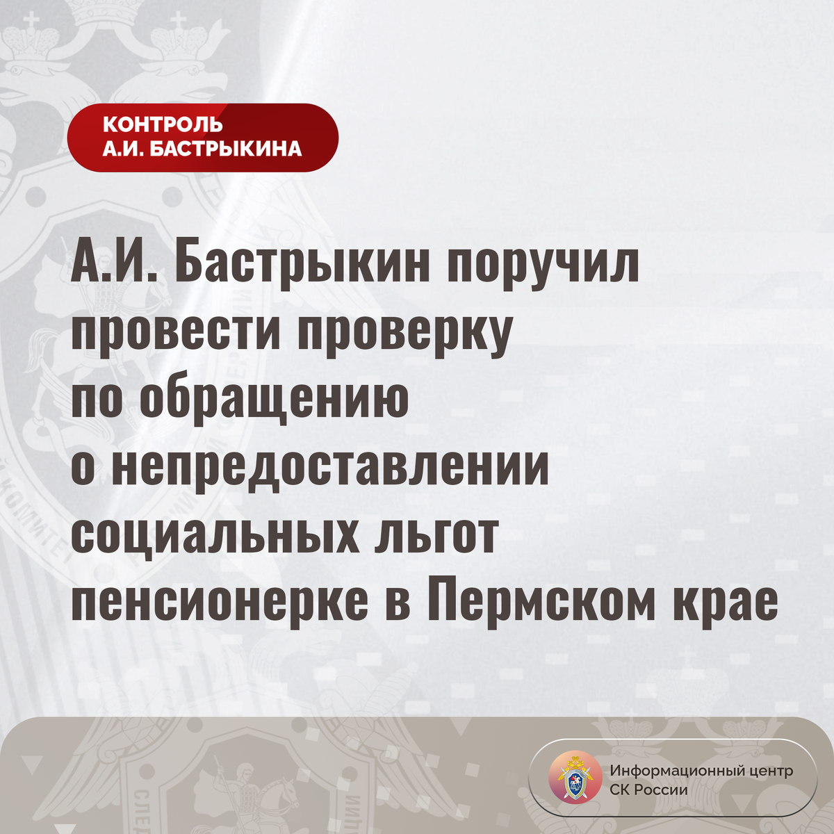 #СледственныйКомитет #СКРоссии #СКР #ИЦСКР #Информационныйцентр #АлександрБастрыкин #Председа